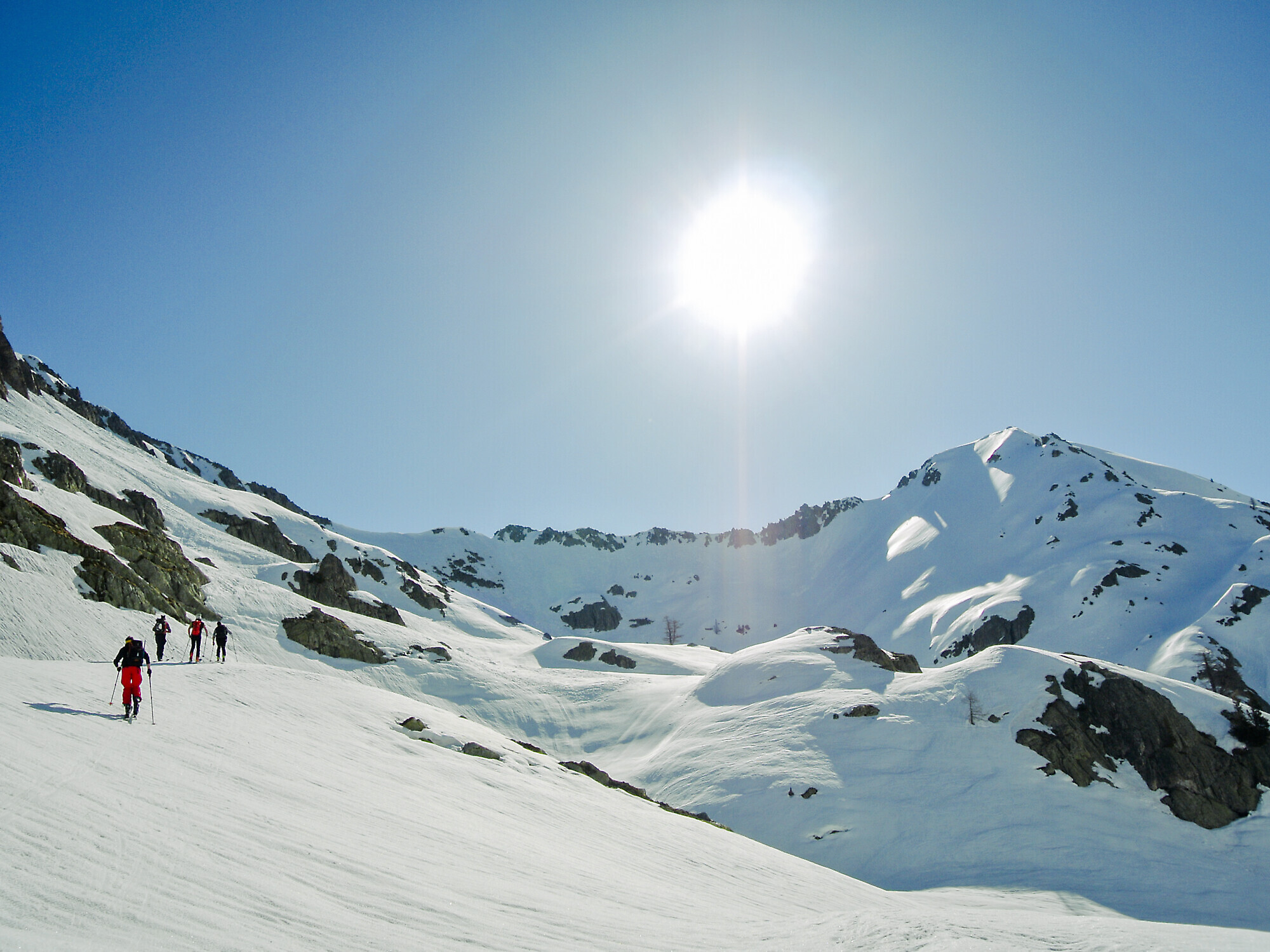 Nel cuore delle Alpi Marittime, la Piana del Valasco costituisce un piccolo gioiello per lo scialpinismo: antico pianoro glaciale, poi diventata lago nel corso dei millenni, infine trasformatasi in torbiera d'alta quota, è circondata da un vasto anfiteatro montuoso le cui vette sfiorano i tremila metri. Pareti rocciose e guglie granitiche si alternano all'infinito con canali nevosi, vasti pendii e valloni appartati. Al centro della Piana l'ex Casa Reale di Caccia – risalente a metà Ottocento e da una ventina d'anni ristrutturata e trasformata in Rifugio Valasco – offre una straordinaria accoglienza nel periodo invernale, costituendo una base strategica per almeno una ventina di itinerari scialpinistici, ben distribuiti su tutte le esposizioni. Con questo programma offriamo la possibilità di esplorare questo bellissimo angolo di montagne durante un periodo di tre giorni, che permetterà di scoprire quella che forse costituisce la caratteristica più significativa del Valasco: la luminosità dei luoghi, che regala contrasti e panorami che sembrano dilatarsi a ogni svolta fino a giungere al mare, visibile dalle vette che confinano con le Alpi Francesi. Gli itinerari hanno lunghezza e impegno variabili, dunque sono adattabili alle capacità del gruppo: offrono innumerevoli possibilità di tour ad anello e traversate, tornando sempre al rifugio, dove la “banda del Valasco” offre una splendida accoglienza e un'ottima cucina.