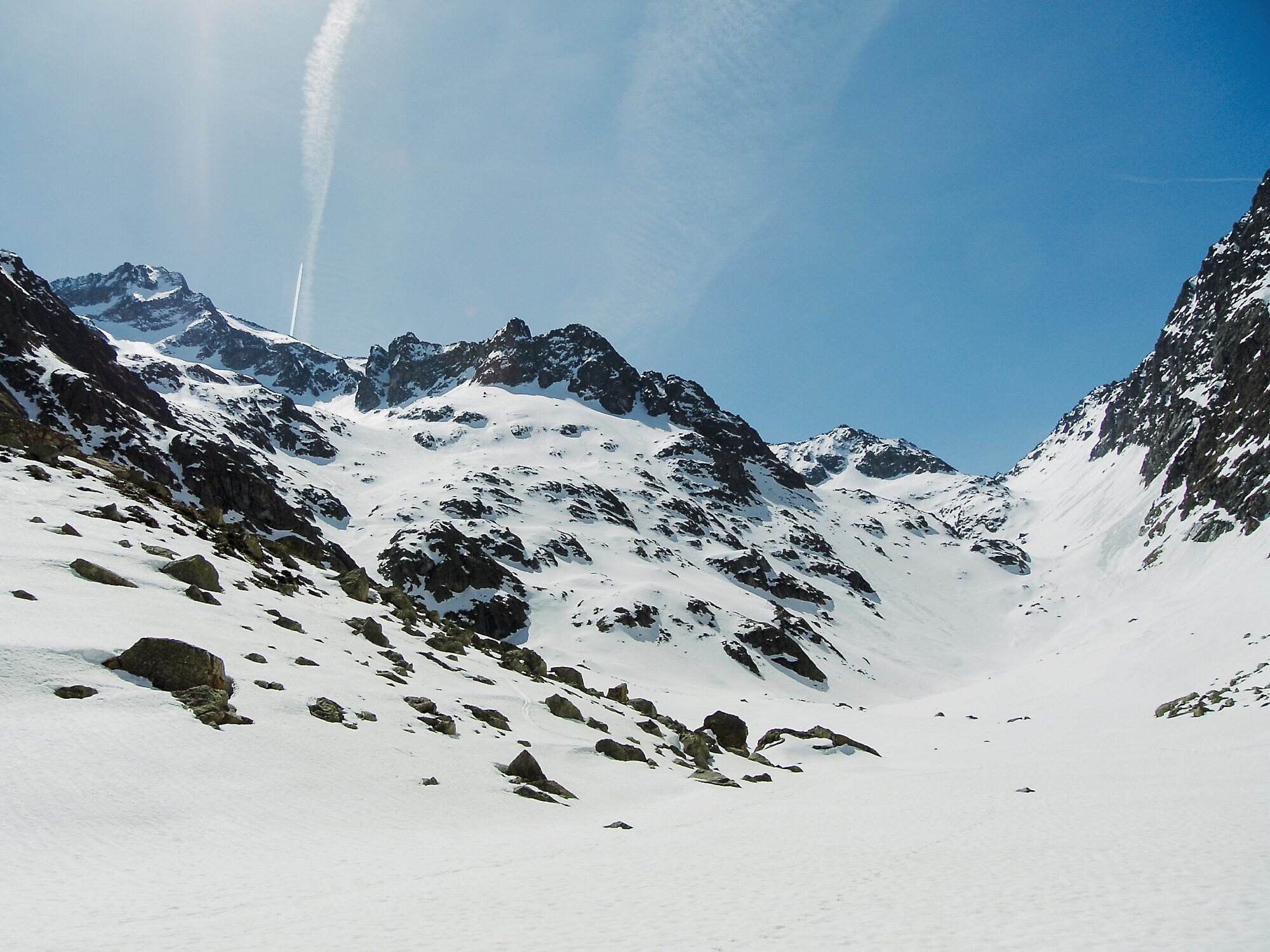 Il Gelas (3143 m) è veramente il Monte Bianco delle Marittime. Nonostante l'innalzamento delle temperature medie dovuto al cambiamento climatico, i versanti del Gelas e delle alte vette che lo circondano (in particolare Maledia, 3061 m, e Clapier, che con i suoi 3045 metri è il tremila più meridionale delle Alpi, distante appena una quarantina di chilometri dal Mar Ligure) rimangono coperti di ghiacci e nevai fino a tarda stagione. La zona è decisamente suggestiva quanto severa, con le nevi primaverili che contrastano con il verde di pascoli e foreste di fondovalle, tanto sul versante italiano – più ombroso e severo – che sul solare versante francese, dove le Alpi digradano verso la Costa Azzurra. Panorami unici dunque, camosci e stambecchi facilmente avvistabili, ma soprattutto infiniti scivoli di neve, paradiso per gli appassionati di scialpinismo. Questo programma prevede il soggiorno presso il Rifugio Soria, nella severa Conca del Praiet, circondata da pareti rocciose solcate da canaloni nevosi e cascate di ghiaccio. La vetta del Gelas è raggiungibile con piccozza e ramponi e il Canale dei Francesi è percorribile in sci solo da parte di ottimi sciatori e con buone condizioni di neve. Si tratta comunque di un itinerario piuttosto tecnico, che richiede un buon allenamento e altrettanto buone capacità sciistiche.