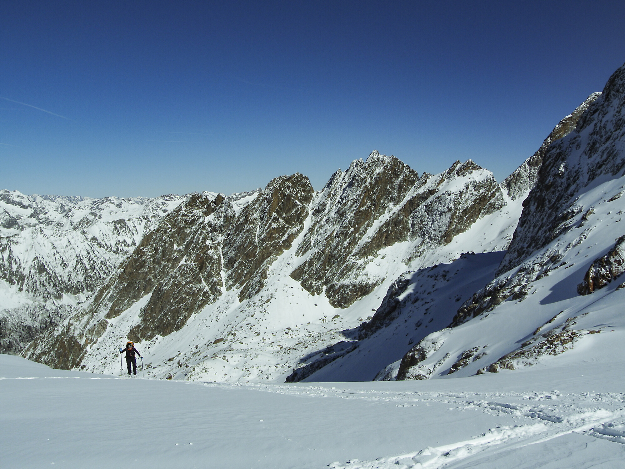 Se la Valle Gesso è il cuore delle Alpi Marittime, l'Argentera ne è la regina. Montagne imponenti e impervie, dagli alti versanti rocciosi che precipitano in profondi fondovalle incassati e rivolti a settentrione con lunghi e sostenuti pendii, innevati fino a tarda primavera: ecco le caratteristiche principali che fanno di queste montagne una "università dello scialpinismo" riconosciuta anche all'estero. Eppure - o forse proprio per questa loro severità - le Marittime sono ancor oggi poco frequentate, e comunque caratterizzate da uno scialpinismo di alto livello, prettamente primaverile e su nevi trasformate. Il tour dell'Argentera è una gran classica dello scialpinismo in zona; in due giorni compie il periplo dell'imponente montagna offrendo la possibilità di esplorarne tutti gli impervi versanti, rimanendo tuttavia in un contesto scialpinistico alla portata di molti: il primo giorno si sale nel solare Vallone di Assedras - dove si pernotta nel bel Rifugio Remondino; il secondo giorno si scavalca di buon mattino il Passo Brocan per sciare alle prime luci del sole sui lunghi scivoli nevosi che conducono alla diga del Chiotas; successivamente si risale al Colle del Chiapous per compiere la discesa finale nel solitario Vallone di Lourousa, dominato dall'omonimo ripido canalone e dalle verticali pareti del Corno Stella.