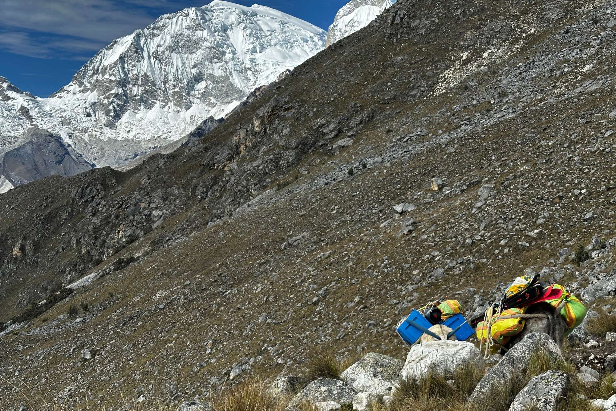 Giorno 9: In questa giornata raggiungeremo il punto più alto dell'intero trekking di Huayhuash: il Cerro San Antonio (5020 m). Di qui si potrà ammirare lo spettacolare Ghiacciaio del Siula Grande, ove fu registrato il film "La morte sospesa" che racconta l'incredibile avventura di Joe Simpson, sopravvissuto dopo una terribile caduta sul Siula Grande che gli procurò una brutta frattura. In seguito scenderemo la Valle de Calinca (4250m), lunga e pianeggiante che con piacevole cammino ci permetterà di raggiungere il villaggio di Huayllapa (3660m) dove ci fermeremo per la notte. Durata del percorso circa 9 ore.